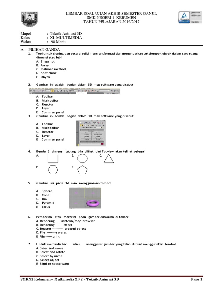 Soal Uas Ganjil Teknik Animasi 3d 2016 2017 Kelas Xi Print