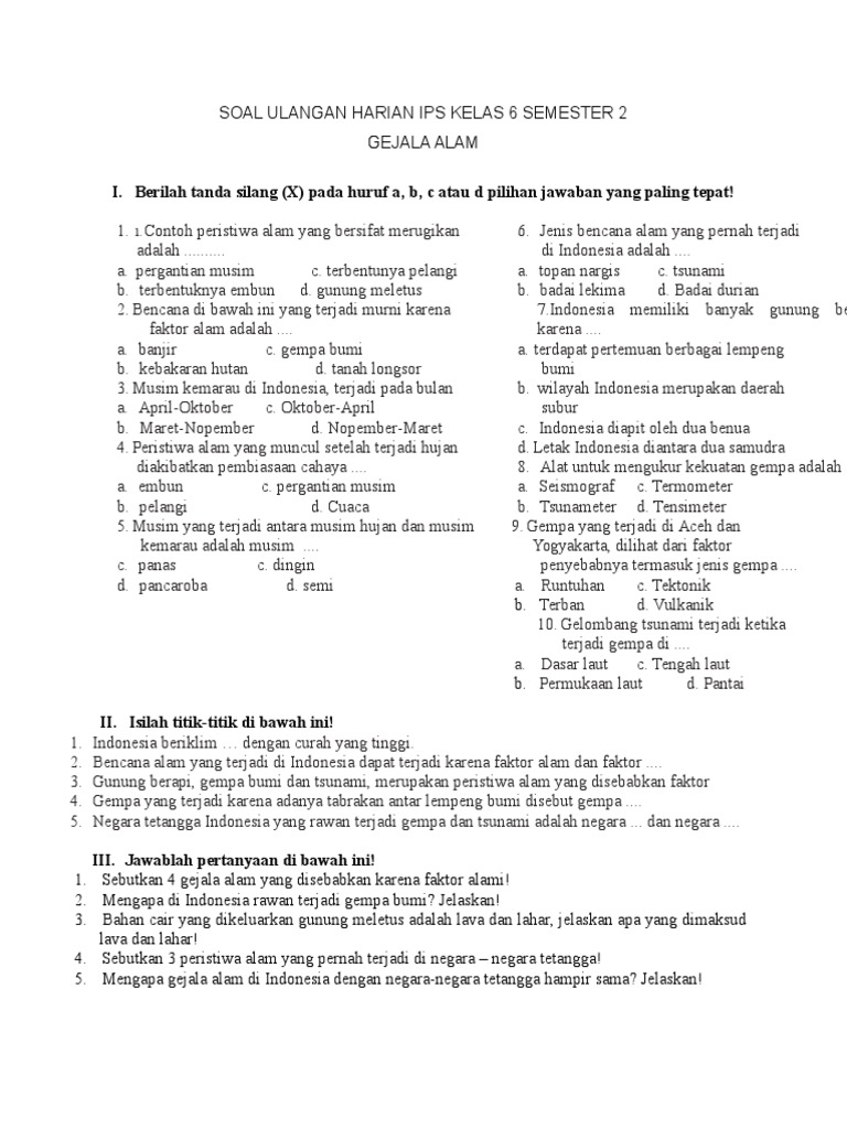 Soal Ulangan Harian Ips Kelas 6 Semester 2