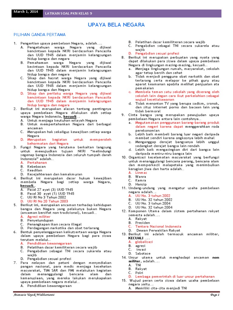 Soal Latihan Jawaban Upaya Bela Negara Part 1