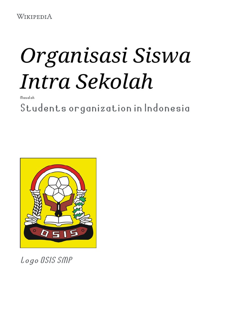 Padahal pembelajaran tidak hanya berlangsung di dalam ruangan kelas melainkan juga di luar kelas maka posisi dan peran OSIS sangat dibutuhkan sebagai. Buku Panduan OSIS terbitan Kemdiknas tahun 2011. Klik untuk memperluas Judul Terkait.