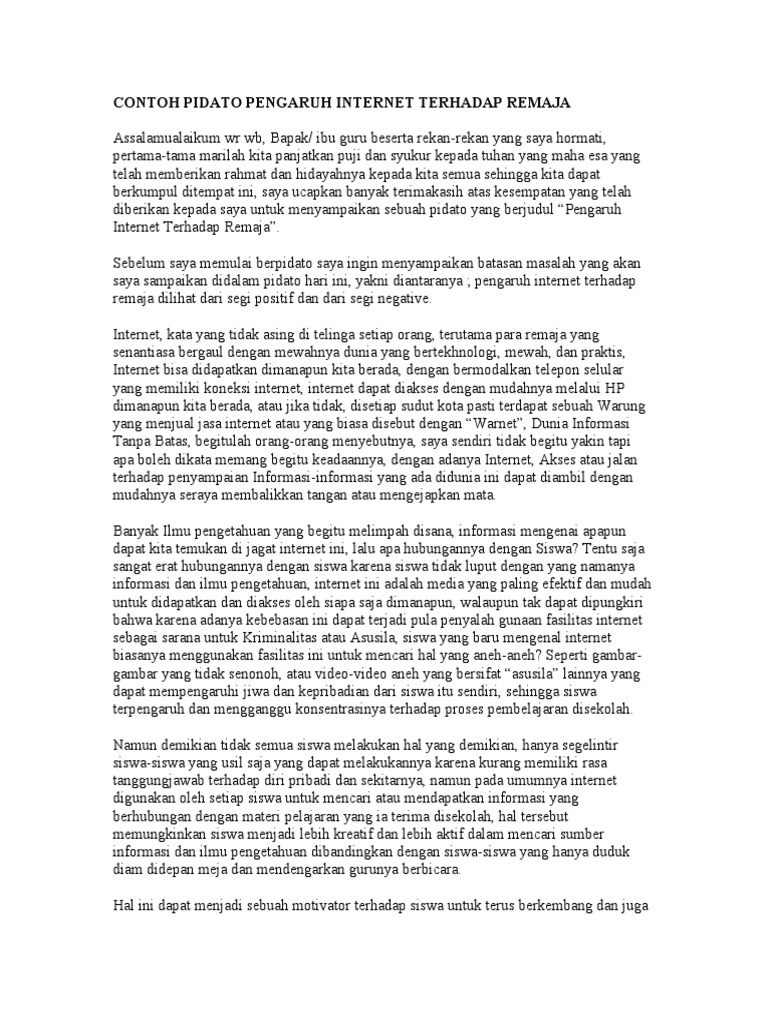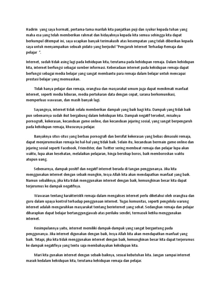 Contoh Pidato Pengaruh Internet Terhadap Remaja