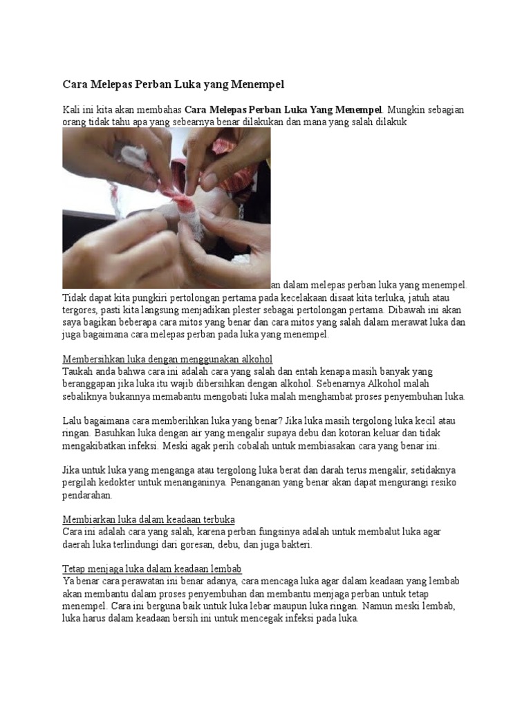 Untuk perban yang menempel pada luka harus dilepas secara perlahan karena berisiko dapat melepas luka yang sudah kering dan luka dapat terbuka kembali. Daftar Rute Angkot Kota Medan. Rendam dengan Air Hangat Cara sederhana yang bisa dilakukan untuk melepaskan perban yang menempel pada luka yakni dengan direndam menggunakan air hangat.
